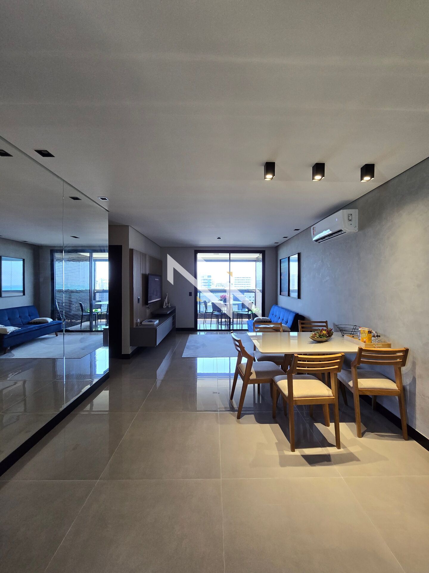 Apartamento de 74 m², mobiliado e decorado, com 2 suítes, sala, cozinha e varanda. Projeto luminotécnico e mobília de alta qualidade. 2 vagas de garagem.